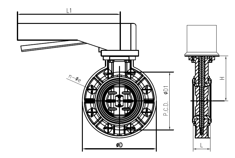 手動(dòng)對(duì)夾塑料蝶閥外形圖: