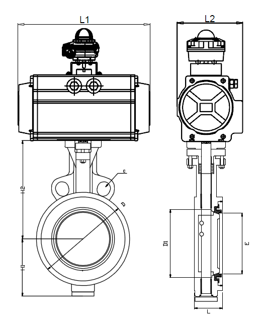 氣動高性能對夾蝶閥外形圖: