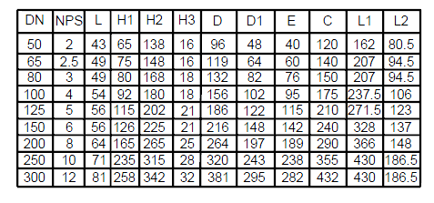 氣動高性能對夾蝶閥尺寸表: